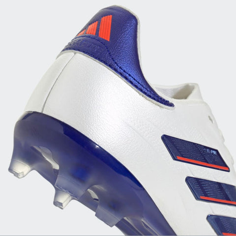 From brain to boot, and back again. Connect with the ball on every level in adidas Copa Pure 2. High-performance features and classic details converge in these comfortable Elite football boots for juniors. Their quilted cow leather forefoot delivers a soft touch. The specialist firm ground outsole makes for unhurried play on dry, natural grass.